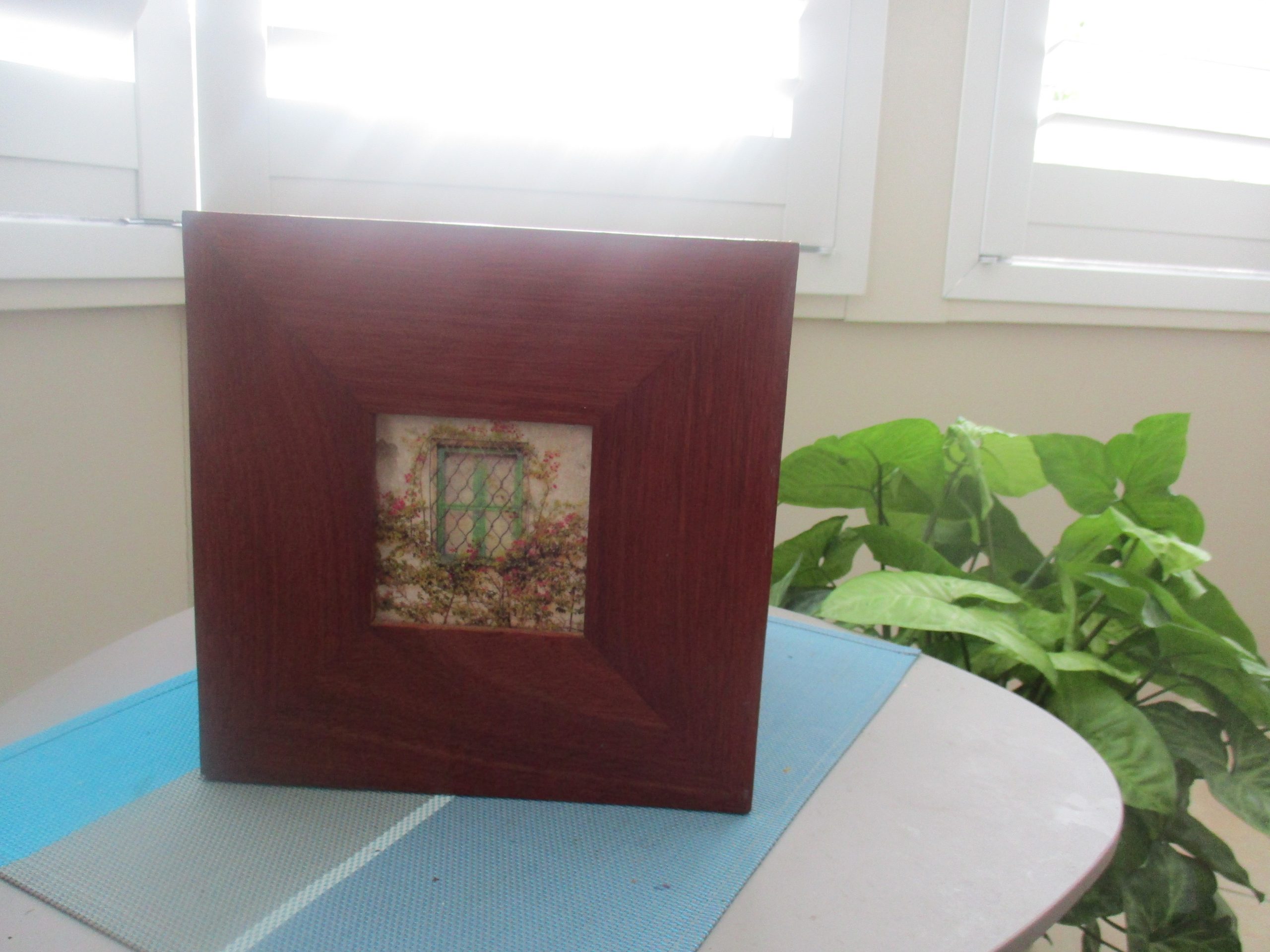 24 X 24 X 26cm blue gum hardwood planter with handcrafted tile