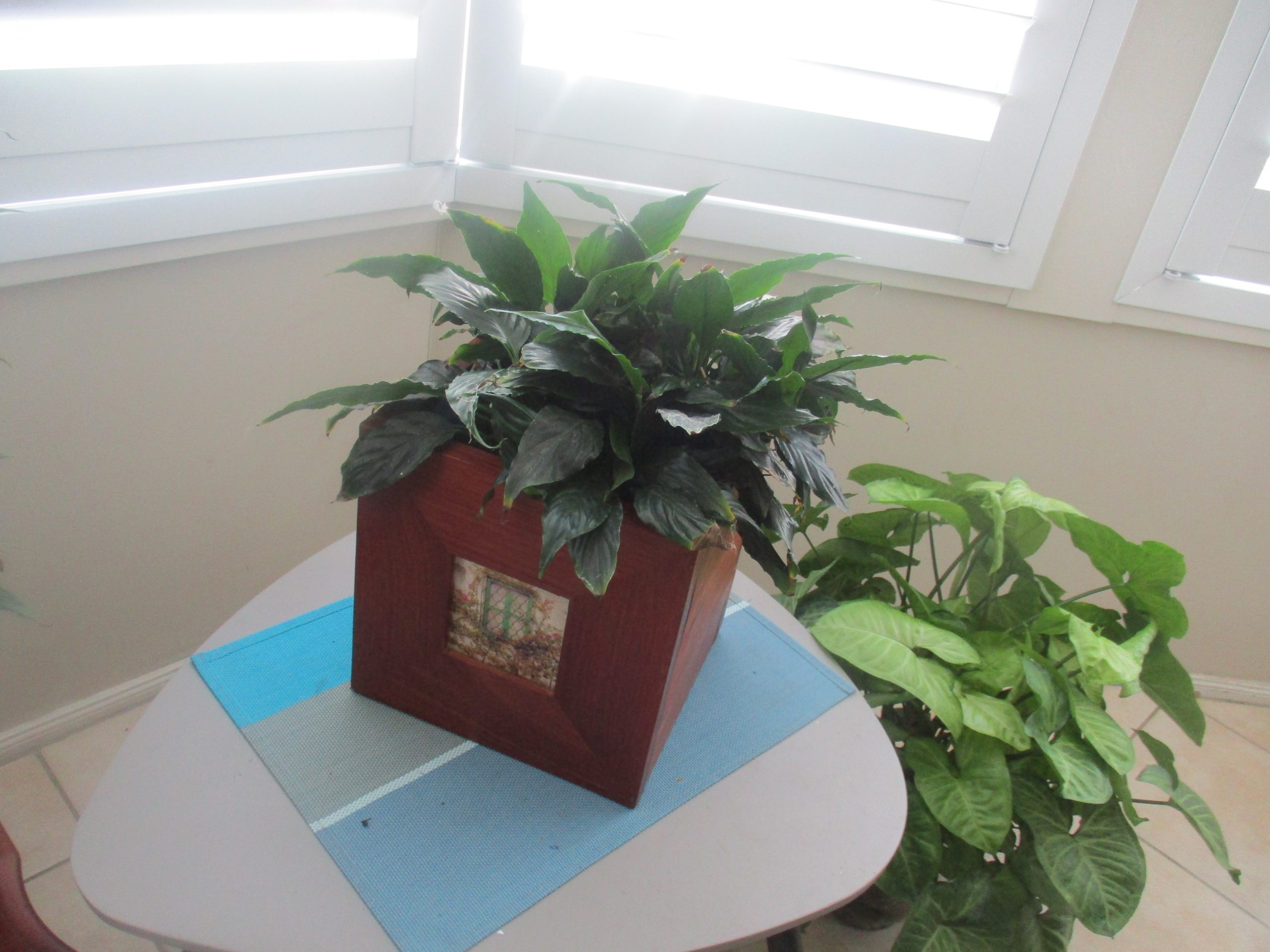 1 potted Blue gum hardwood planter with handcrafted tile